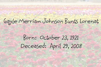 Dedicated to Gayle Merriam Johnson Bunts Lorenat…my mother who died on April 29, 2008.